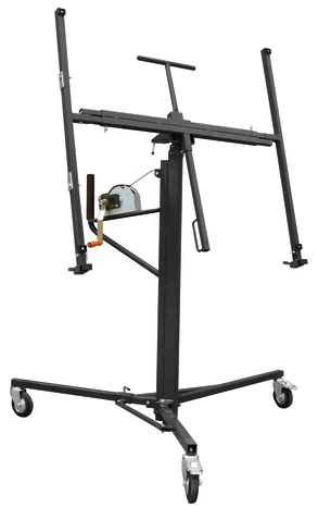 Ce lève-plaque est conçu pour faciliter la pose de plaques de plâtre sur les plafonds droits. Mobile et pratique, il est équipé de roues avec freins qui vous permettent de le déplacer facilement. Son bras télescopique dispose également d'un système de verrouillage pour positionner et sécuriser votre plaque.