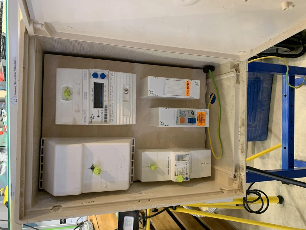 Le tableau électrique de chantier se raccorde au niveau du disjoncteur de branchement temporaire mis en place dans le coffret de chantier. Il peut également être relié au disjoncteur de branchement existant s’il s’agit d’une rénovation. Cela implique qu’il faut travailler hors tension en remettant le disjoncteur de branchement à 0. Ensuite, il convient de vérifier l’absence de tension aux bornes du disjoncteur de branchement après l’avoir remis à 0.