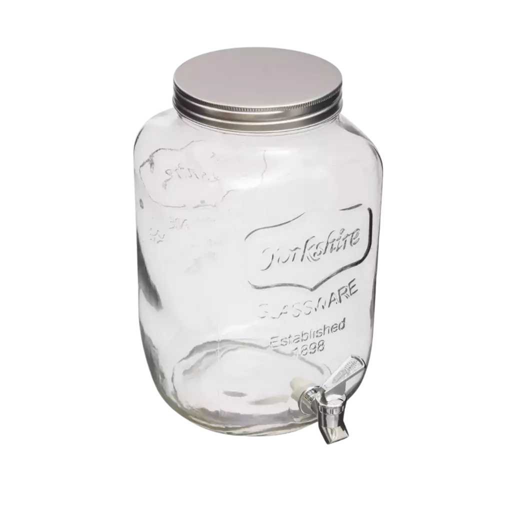 Modèle : Fontaine distributeur de boisson en verre avec couvercle en métal.