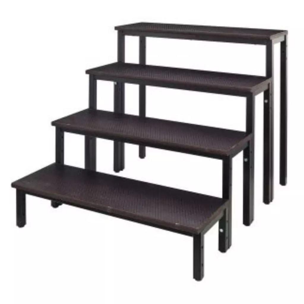 Optimisez l'accès à vos praticables avec notre escalier de 100 cm, disponible avec ou sans rampes, pour une montée et une descente en toute sécurité.