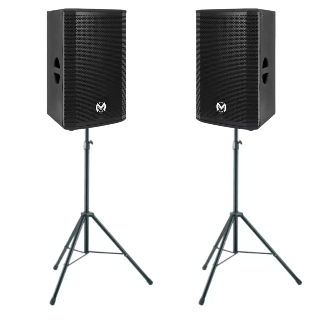 Caractéristiques : Paire d'enceintes amplifiées 12" 1000w | trépieds | 2 housses de protection