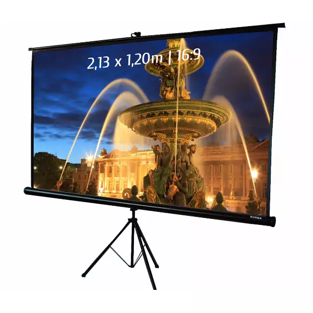 Caractéristiques : 213x120cm | 16:9 | écran blanc | inclus trépied | option : vidéoprojecteur