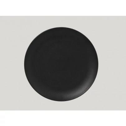 Une assiette plate d'un noir intense pour une présentation élégante.